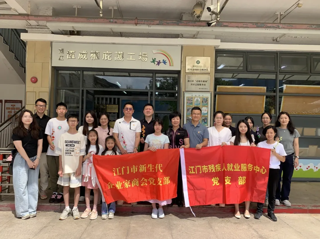为进一步加强支部党建工作交流,营造理解、尊重、关心、帮助残疾人的良好社会氛围,2025年8月29日,江门市残疾人联合会机关党支部、江门市残疾人就业服务中心党支部与江门市新生代企业家商会,共同走进蓬江区伍威权庇护工场,结对开展“参观学习 + 生命教育 + 手工协作”形式的“三个一” 党建助残活动。市残联党组成员、副理事长李润娇,市新生代企业家商会罗达全会长及党员、会员等共同参与此次活动。