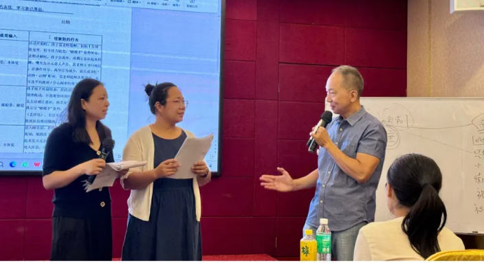 培训中,林老师通过案例剖析、现场演示、互动答疑等形式,将复杂专业知识转化为易懂实用的操作指南,在实操环节设置模拟训练场景,安排学员分组进行技能演练等,并耐心解答、逐一指导,帮助学员纠正了过去对于感觉统合训练的错误认识,确保每位参训人员真正掌握技术要领,现场学习氛围浓厚。
