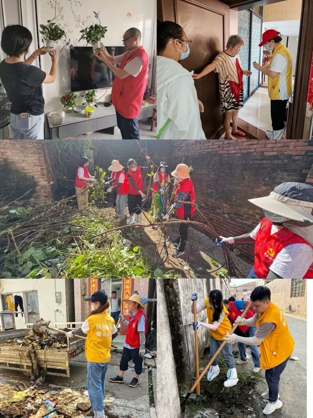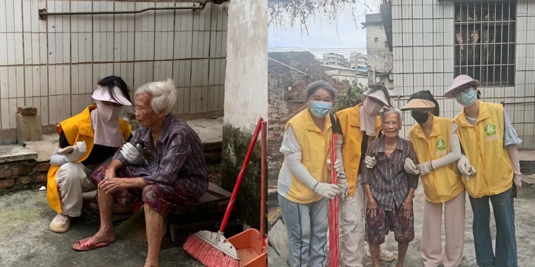 在白沙社区,95岁的梁婆婆,有点耳背,刚开始不理解大家的工作,有很大的抵触情绪,不愿清理门前的垃圾杂物,卫生清理工作一度停滞。中心的老师陪她拉家常,用本地乡音耐心沟通、细心劝导,最终赢得理解,顺利清理杂物。望着焕然一新的家门口,老婆婆笑得格外灿烂,主动与市残联志愿者合影,温暖的瞬间为大家内心注入了无限的动力。