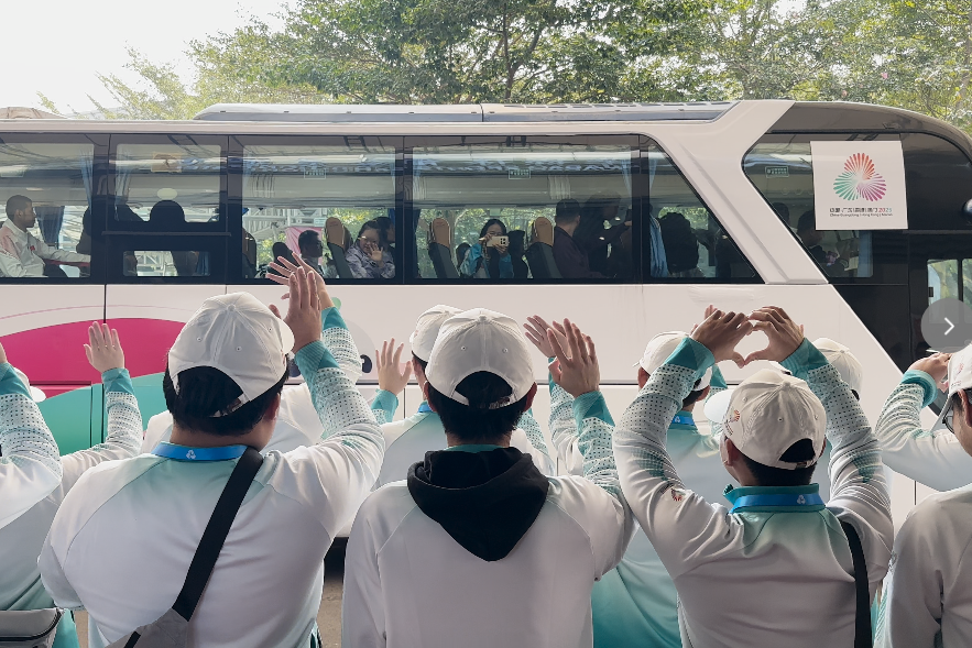 “谢谢你们!”“江门再见!”“一路平安,返程顺利!”简单的道别,承载了数日来沉淀的深情。不少运动员一步三回头,用力挥手,直到登上大巴,仍将脸贴在车窗上,凝望窗外那些熟悉的身影,还有的伸出手,比划出一个大大的爱心。这一刻,一种单纯而不舍的情感联结无比真实动人。