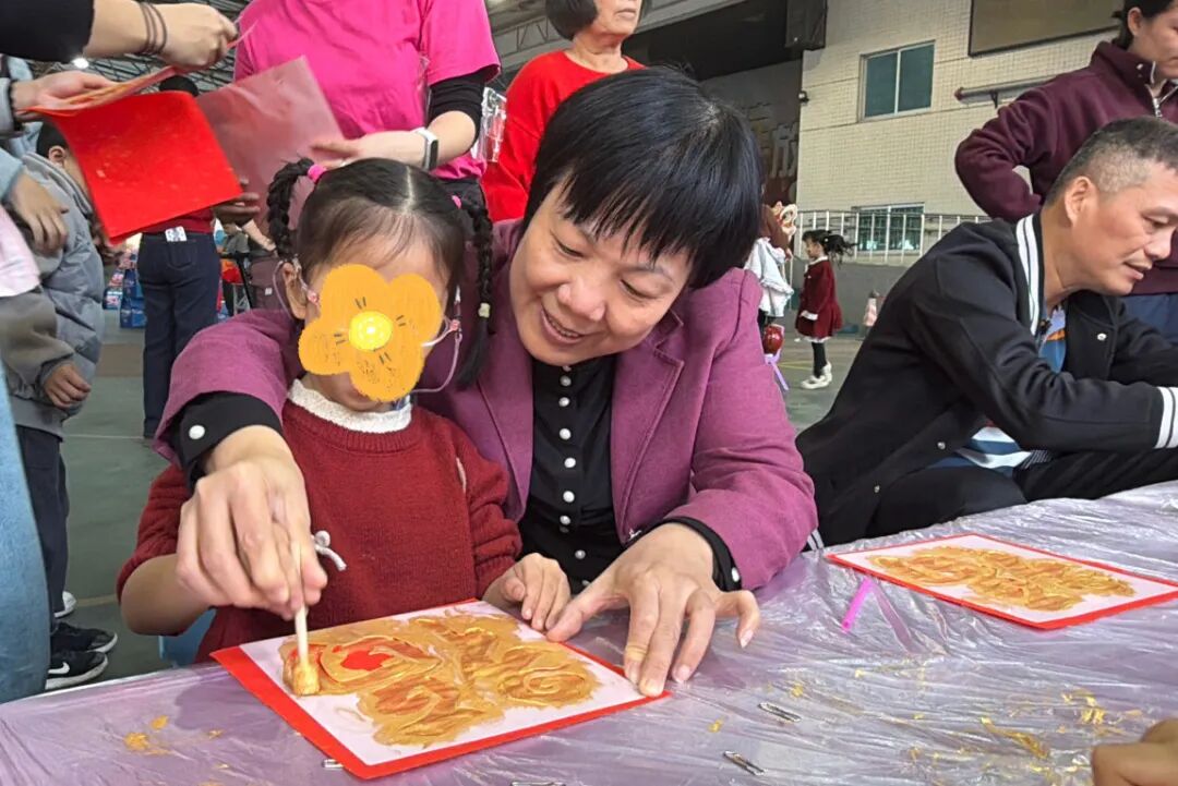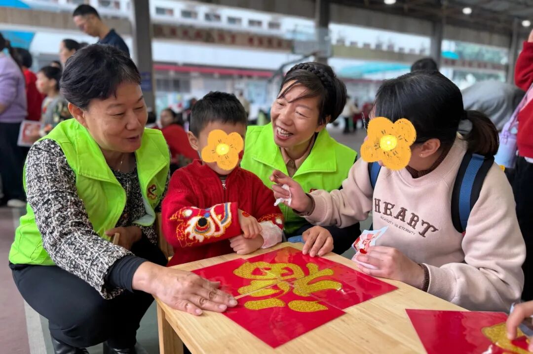 活动现场处处流淌着浓郁的新年暖意与童趣,老师们为孩子们贴上寓意吉祥的福字、灯笼等新年主题贴纸,将满满的新年祝福悄然传递。精心布置的新年打卡墙前,孩子或是牵着家长的手,或是依偎在老师身旁,又或是与小伙伴们并肩而立……一张张洋溢着幸福的笑脸,成为这个冬日里最温暖动人的风景。