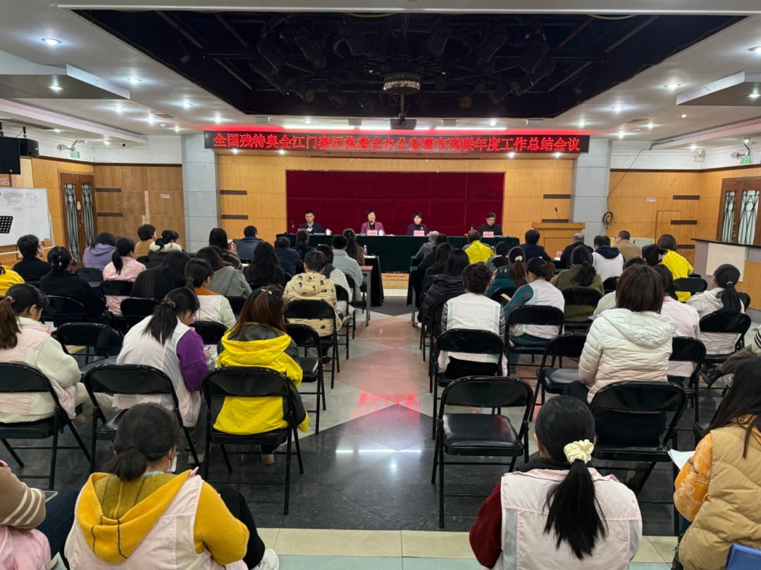 2026年1月5日,全国残特奥会江门赛区执委会办公室暨市残联年度工作总结会议在江门市残疾人综合服务中心多功能厅召开。会议对2025年市残联工作以及三年来筹备残特奥会工作进行了全面的总结和复盘,并对新一年重点工作进行了具体部署。市残联机关及下属事业单位全体干部职工参加会议。市残联党组书记、理事长叶芳华出席会议并讲话。