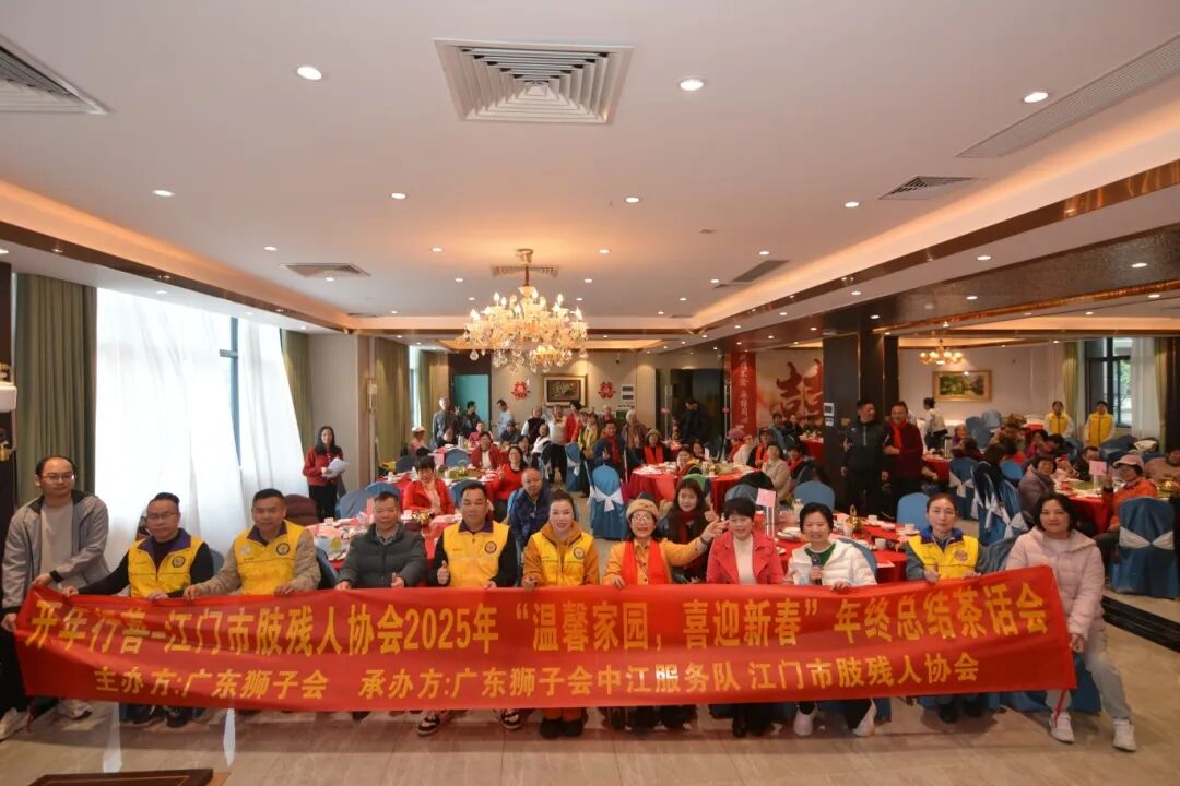 2月1日,江门市肢残人协会2025年度“温馨家园,喜迎新春”年终总结茶话会温馨举行。江门市残联、广东狮子会中江服务队代表、市聋人协会代表及肢协成员共100人齐聚一堂,共话情谊,喜迎新春。