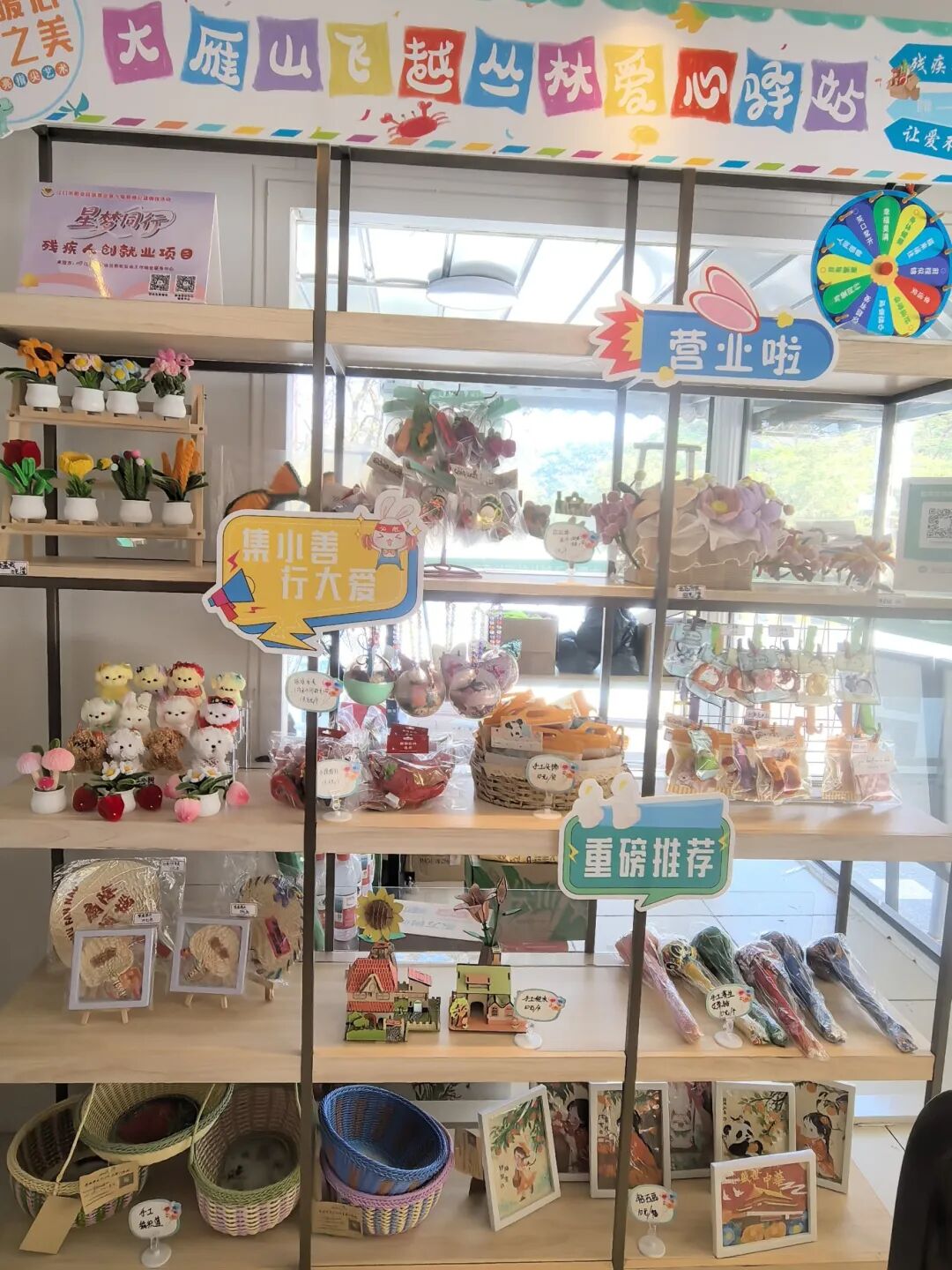 为拓宽残疾人手工艺品销售渠道,助力残疾人创业增收、实现自我价值,江门市残联搭建残疾人创业创新服务平台,精准链接社会资源,布局公益义卖点,构建多元化、全覆盖的公益销售网络,让助残公益与不同场景深度融合,为残疾人手工艺品搭建起高效便捷的展示与销售新载体,各义卖点均已初见成效、各具特色。