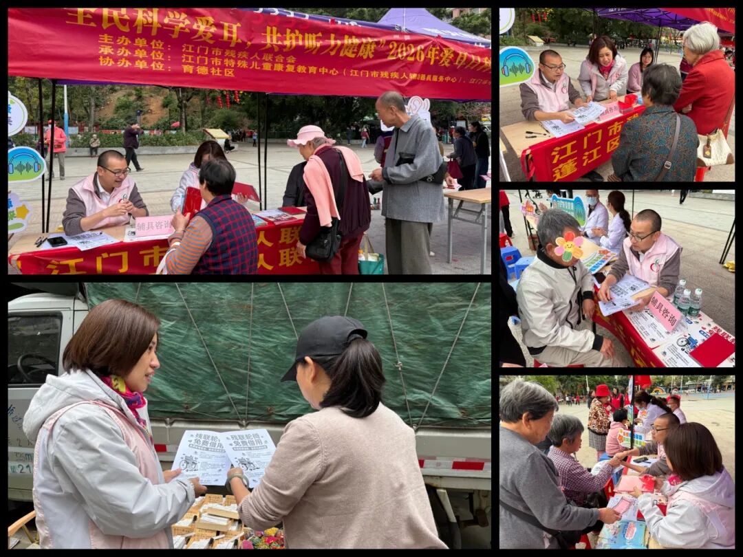 3月3日,在第27个全国“爱耳日”之际,江门市残疾人联合会联合江门市中心医院、蓬江区残疾人联合会在蓬江区育德文体广场举办以“全民科学爱耳、共护听力健康——安全用耳,健康成长”为主题的科普宣传与公益义诊活动。